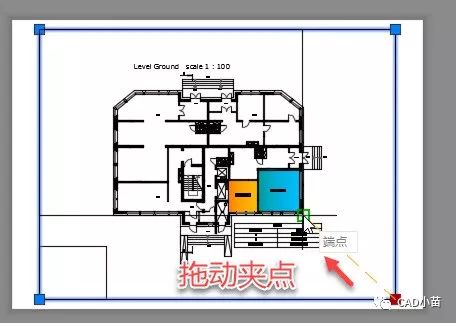 如果对比例和显示的图形范围有明确的要求,视口尺寸由比例和视图来决定时,可以在设置好视口比例后直接拖动视口的夹点来修改视口,如下图所示。