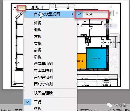然后在布局空间右上角的视图菜单中可选择命令的视图显示,如下图所示。