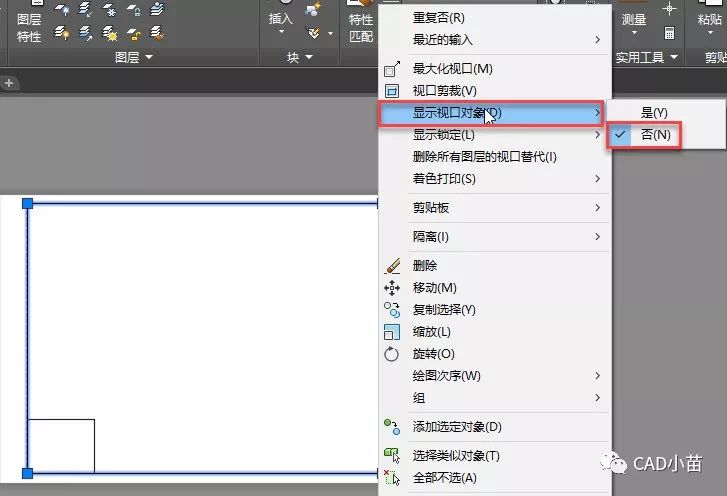 视口显示的打开和关闭不用执行MV命令了,选中视口后,可以直接在右键菜单中设置,如下图所示。
