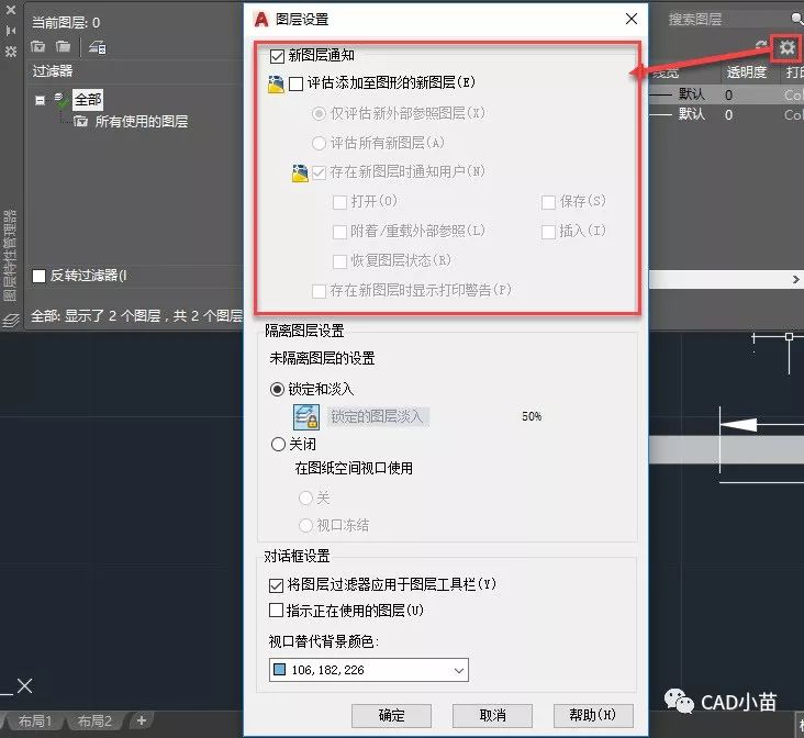 如果我们不打开新图层通知,即使图中或外部参照中出现新图层也是不会出现提示的,我们首先来看看如何打开新图层通知。
