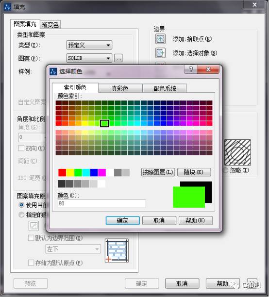选择需要的颜色,然后确定,并在右上角点击添加:拾取点。