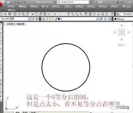 5、这是一个5等分后的圆,但是点太小,看不见等分点在哪里。不方便操作。