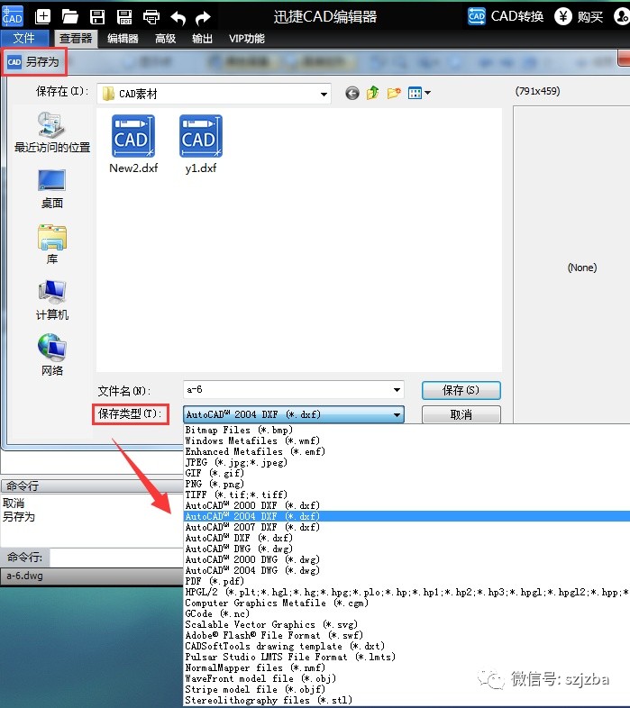 除了浏览和编辑功能,如果CAD版本过高,也可以将高版本的CAD转换成低版本的CAD文件。方法如下: