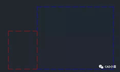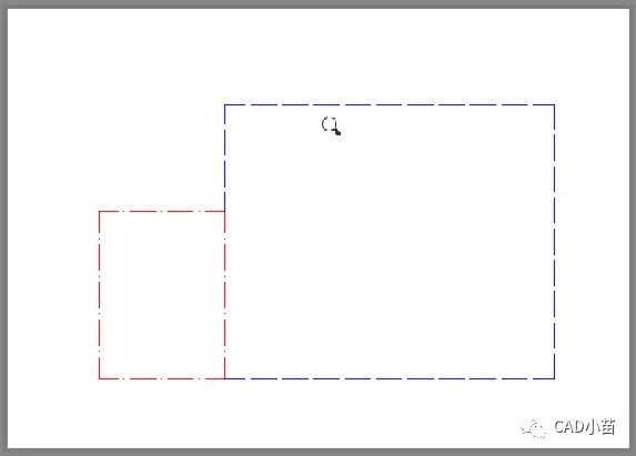 下面我们通过一个简单的例子来看一下怎么回事,我绘制了一个简单的例图,在例图中绘制了两个矩形,线型分别设置成虚线和点划线,线型比例设置为50,如下图所示。