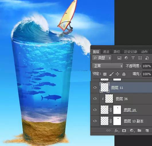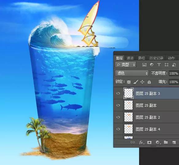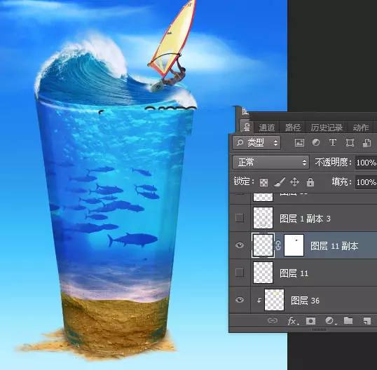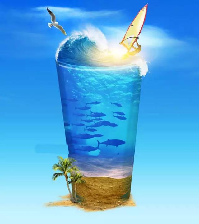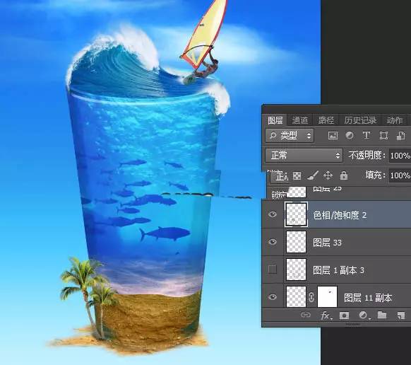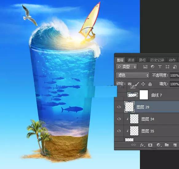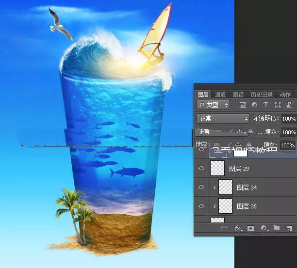 37、杯子底部加上椰树素材,如下图。