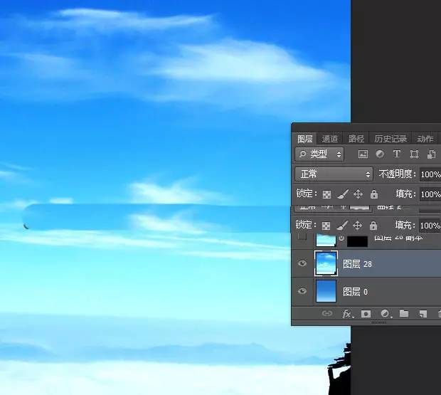 4、打开天空素材,用移动工具拖进来,调整好位置,如下图。