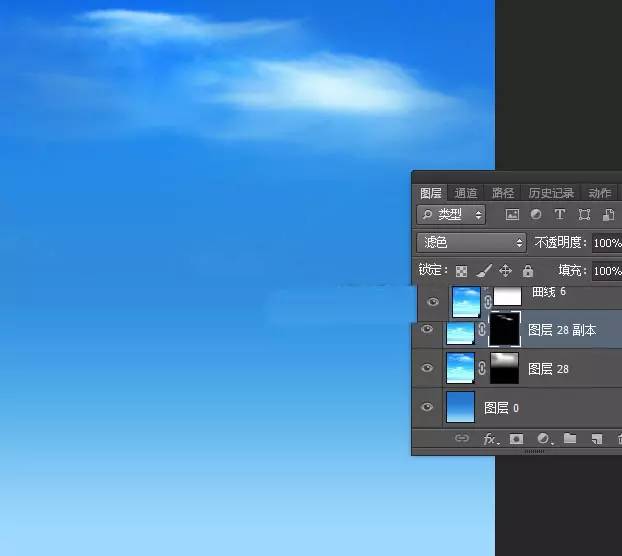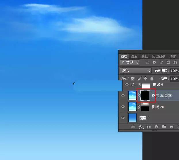 6、按Ctrl + J 把当前云朵图层复制一层,混合模式改为“滤色”,然后把蒙版填充黑色,如下图。
