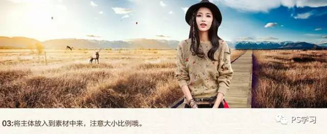 | 3、将主体放入到素材中来,注意大小比例。 |
