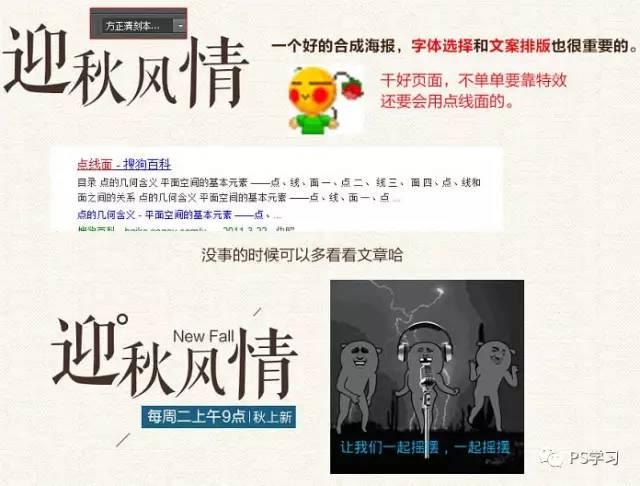 | 三、添加文案。 一个好的合成海报,文字选择和文案排版也很重要的。页面不单单要靠特效,还要会用点线面。 |