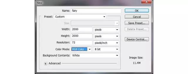 创建一个2000×2000的像素文件: