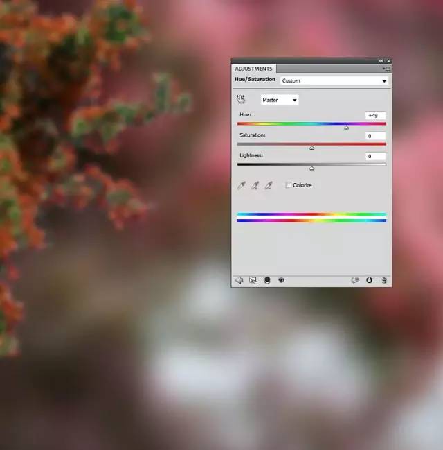 图层>新建调整图层>色相/饱和度和改变色相值49: