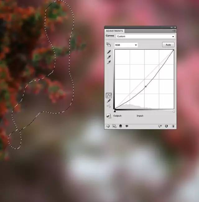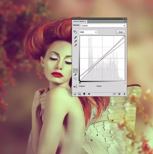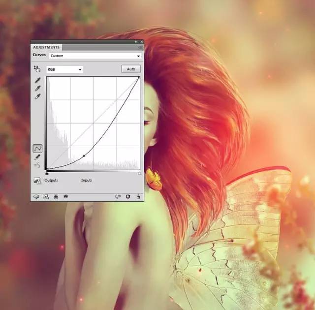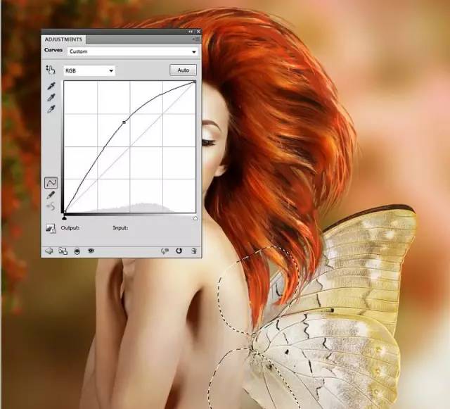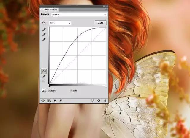 使用曲线调整图层,照亮蝴蝶。刷在蝴蝶的下部,使蝴蝶上部亮下部俺: