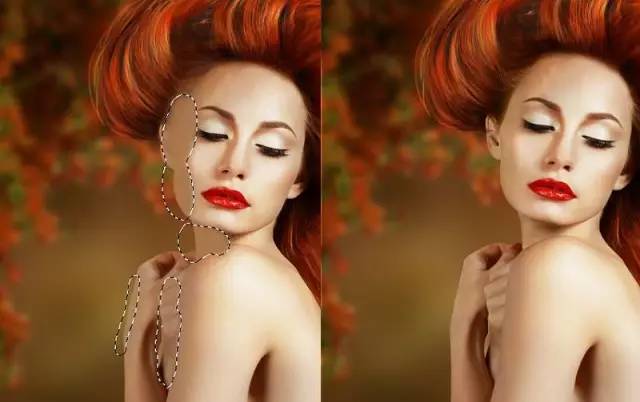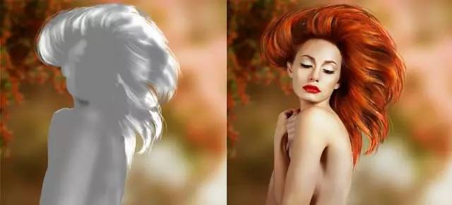 使用图层蒙版从背景中分离模型(但可以随意使用自己的方法)。在新图层上抠出模特。创建一个新层,并选择从模特头部的暗金的颜色(我选择#6a3017)补齐缺少的头发。