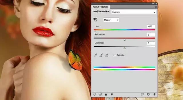添加色相/饱和度调整层改变蝴蝶的颜色: