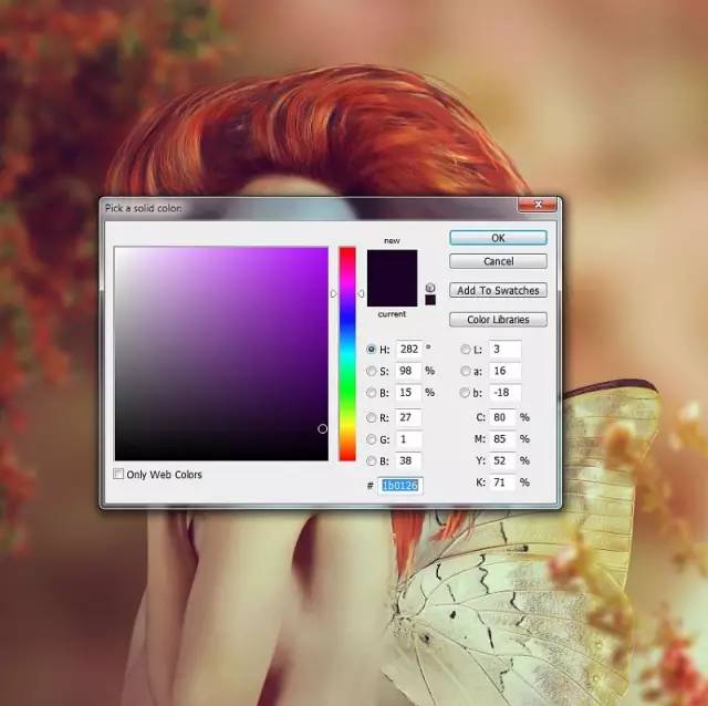 创建一个颜色填充在层的顶层,颜色#1b0126。更改此图层模式为排除100% 。