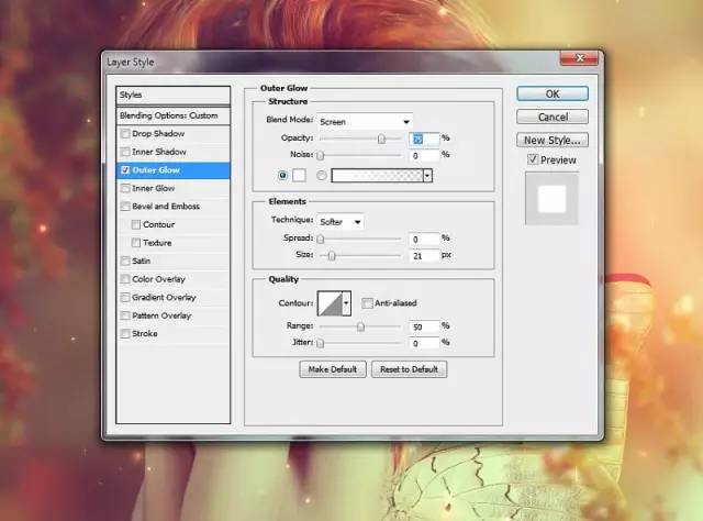 双击该图层,然后选择外发光。 将#fcfcfc作为辉光的颜色: