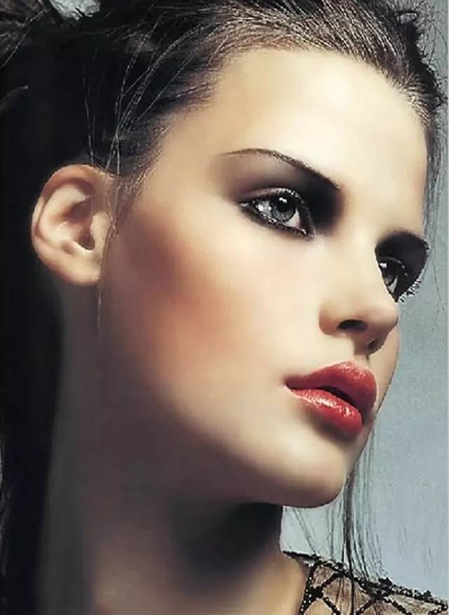 (12)新建一个图层4,将其拖到图层1副本的下方,设置前景色的颜色为黑色,选择画笔工具,并在其工具选项条中设置适当画笔大小,在脸部的左侧进行涂抹以加深阴影,得到如图18所示效果。设置图层4的混合模式为“叠加”,得到如图19所示效果。