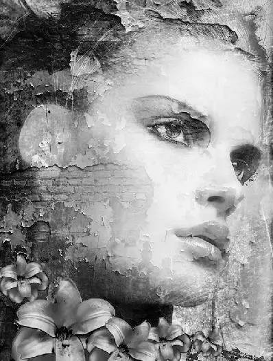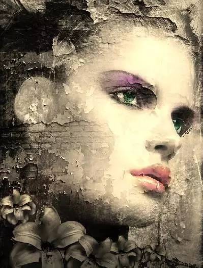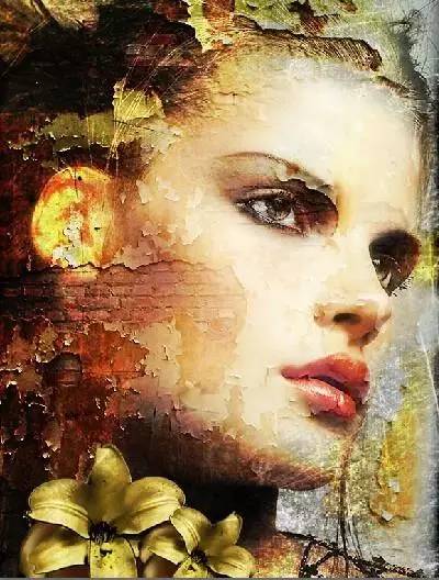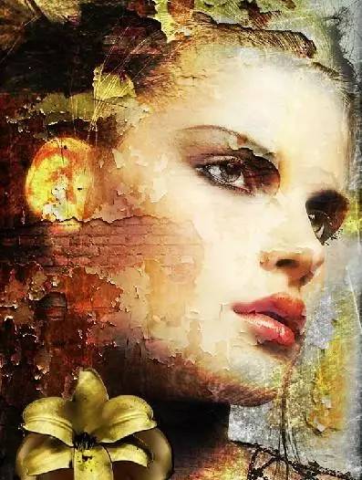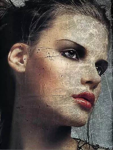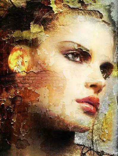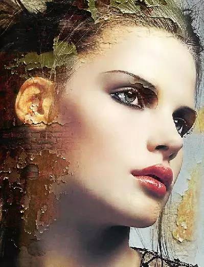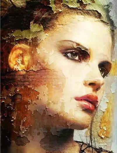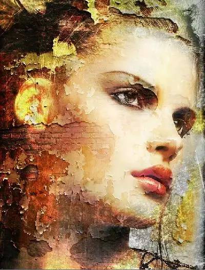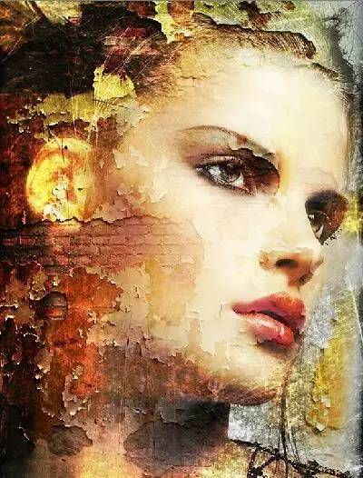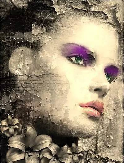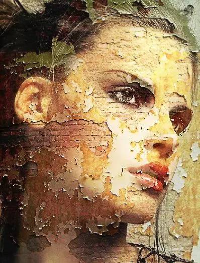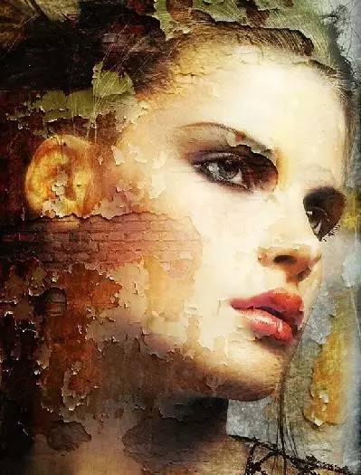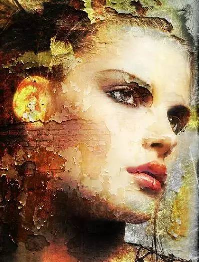 此合成案例是感受、理解图层模式、图层蒙版在创意合成中的作用的典型案例。整个效果类似剥落的壁画,斑驳的纹理、周围灰暗的颜色,突出了人物神奇、深邃的眼睛。