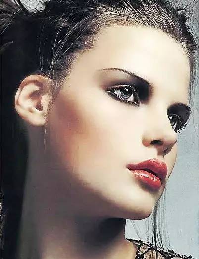 (19)新建一个图层6,设置前景色的颜色值为099579,选择画笔工具,设置画笔大小为40px左右,硬度为0%,在工具选项栏上设置不透明度为100%在人物的两只眼睛上分别单击,然后设置其混合模式为“亮光”,不透明度为45%,得到如图30所示效果。