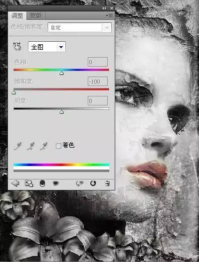 提示:墙面的裂纹已经影响了人物的五官,从而失去了美感,所以要用图层蒙版来进行调整。