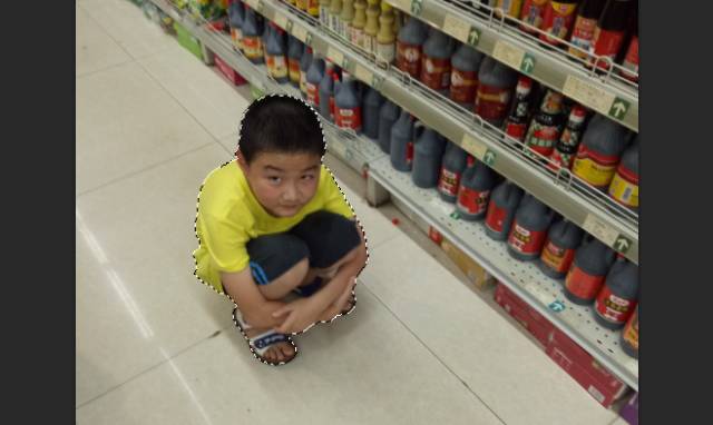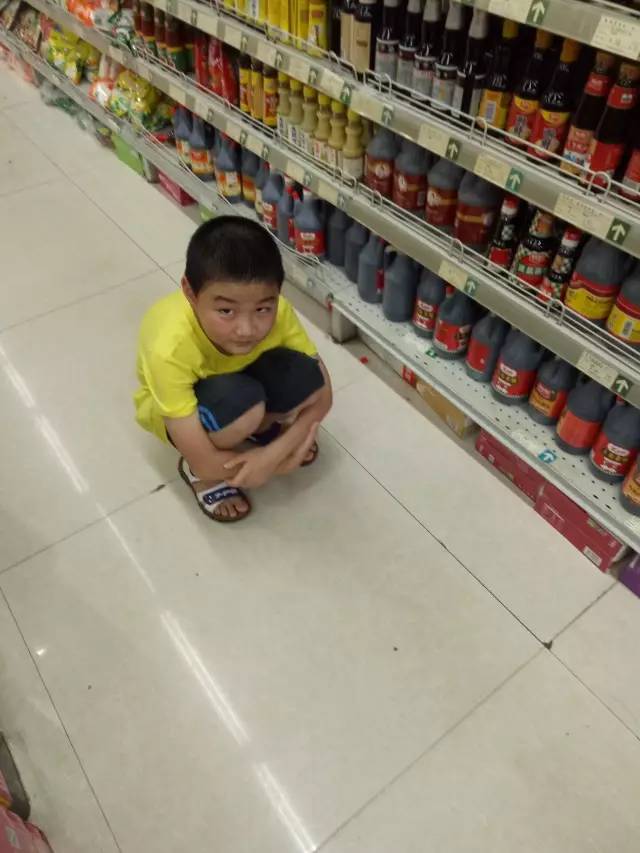 我选了一个蹲在超市货架旁边的小孩儿