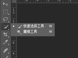 把图片拖到PS里之后,看到最左边这里的工具栏从上往下数第四个工具(其实我们用的是快速选择工具而不是魔棒工具啦,可以试试看两种工具的差别)