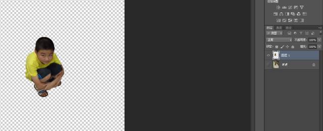 这时候在背景图层或者按上周的方法新建的图层1被选中,即蓝色的状态下,按快捷键 crtl+J,抠出来的图像就单独出来了一个图层。背景变成了格子,这就表示,背景成功变成透明的了。