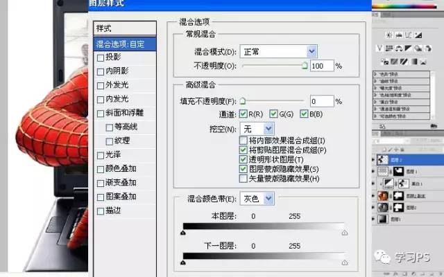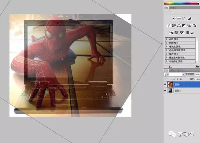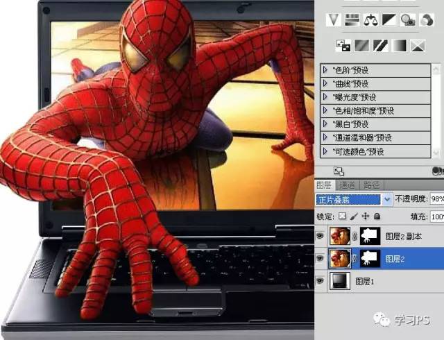 7、复制一层,把底下蜘蛛侠的混合模式改为正片叠底。