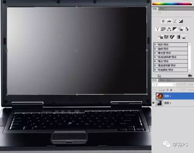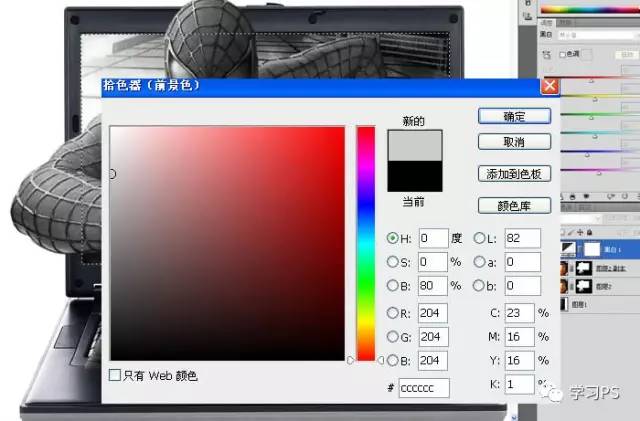 9、复制屏幕的选区,在黑白调整层的蒙版中填充80%亮度的灰色,我想让屏幕里的部分饱和度稍微低一点,现在我开始后悔了,应该让饱和度再高一点,感觉颜色有点太淡了。