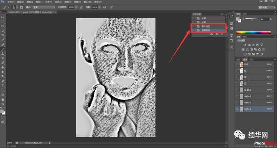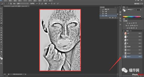 操作成功后,应得到一个Alpha 3图层和一个高对比度的图像,如下图所示: