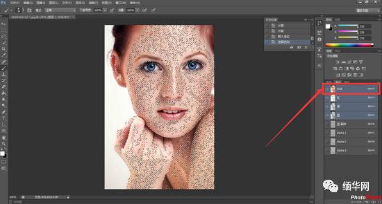 接下来是比较容易出错的步骤,让我们来拆分成两步进行说明:在以上步骤都成功以后,点击通道中的RGB图层。