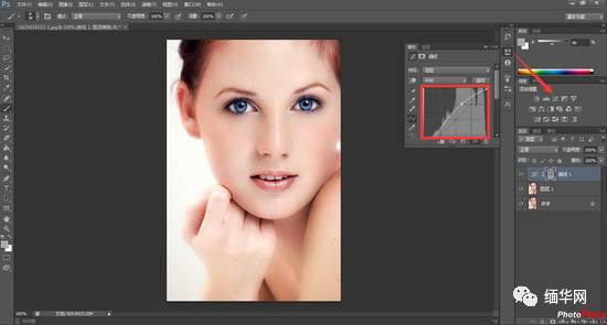 紧接着点击图层页面,点击曲线选项,对图层进行曲线调整,参数因人而异,只要记住不要过于夸张即可。