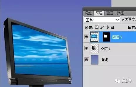 第二步:准备一张大海的图片,按住Ctrl单击图层图标,将图片变为选区 ,Ctrl+C准备粘入显示器。