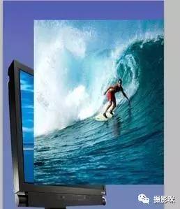 第三步:用多边形套索工具在显示器屏幕上选出一个选区,选择编辑菜单—选择性粘贴—粘贴入,将大海图片贴入显示器屏幕,这就是一个剪粘蒙版的效果。