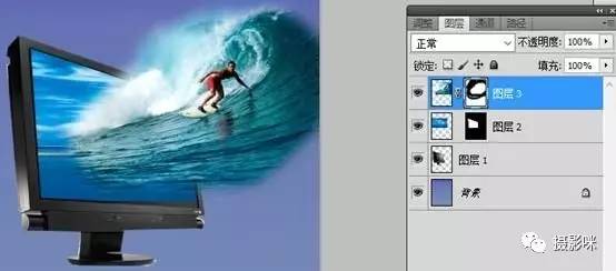 第五步:调整好图片大小和位置,在冲浪照片图层上建立图层蒙版。