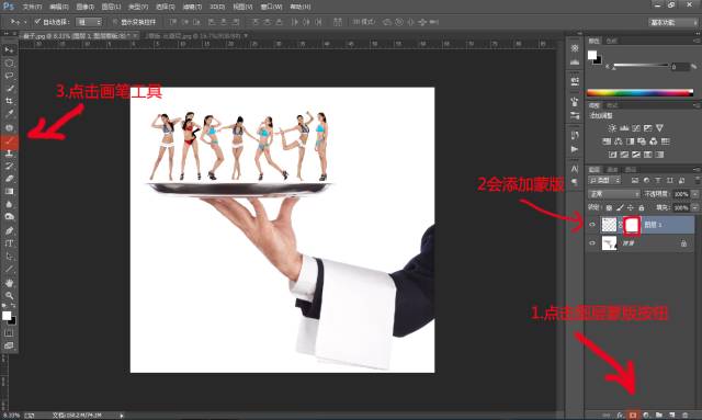 1.1111111111111.点击图层蒙版按钮,会自动添加蒙版在所选图层上(如2所示)