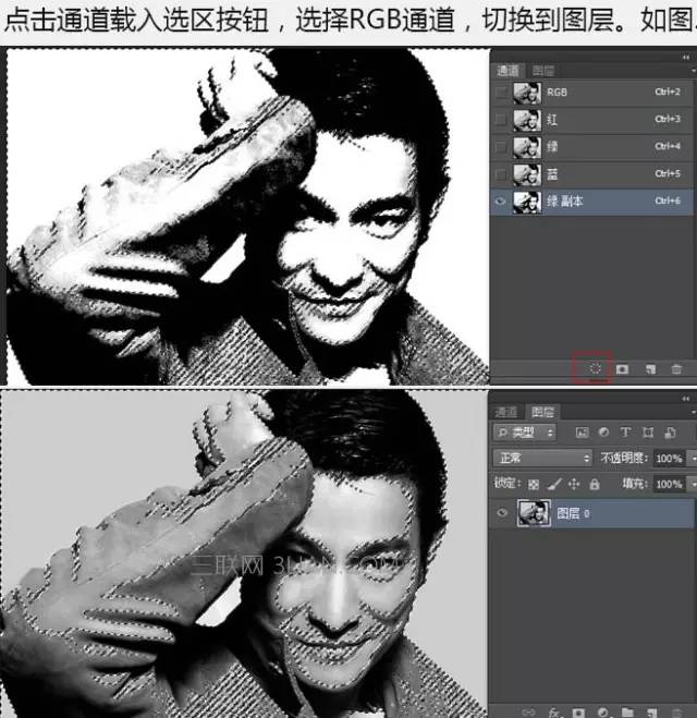 3、点击通道载入选区按钮,选择RGB通道,切换到图层,如下图。