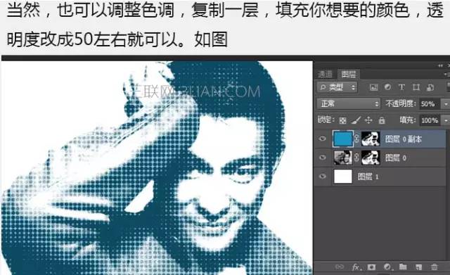 6、当然也可以调整色调,复制一层,填充你想要的颜色,透明度改成50%左右就可以。