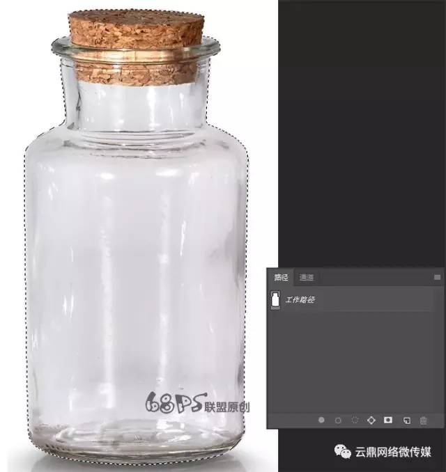 | 2、选择钢笔工具(P),用钢笔工具勾出瓶子的轮廓,转到路径面板,按Ctrl键鼠标左键点击路径面板得到选区。 |