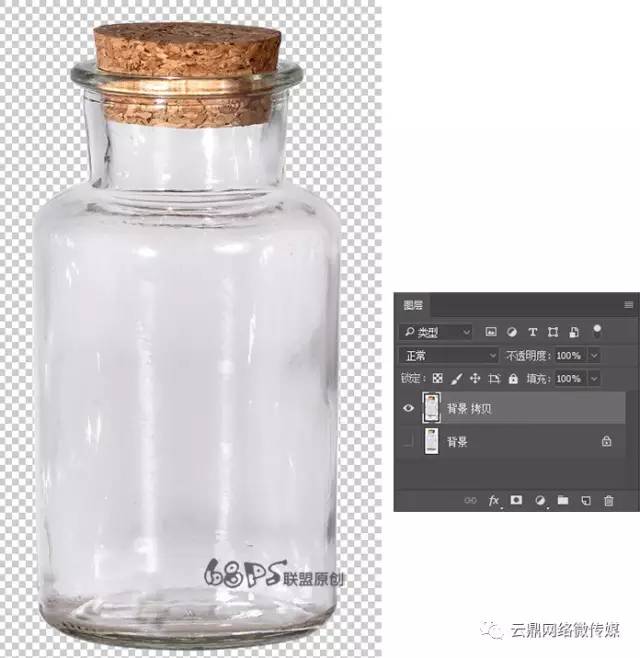 | 1、在photoshop中打开玻璃瓶的图片,并Ctrl+J复制图层。 |