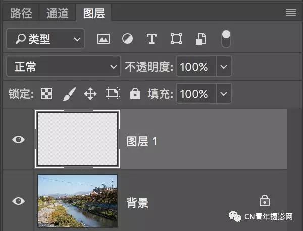 将这张照片在Photoshop中打开,然后在图层面板下方选择倒数第二个图标(形如一张折了一角的纸),该图标的作用是建立新图层。点击后会发现在我们的原有图层上,多了一个叫做“图层1”的空白图层。