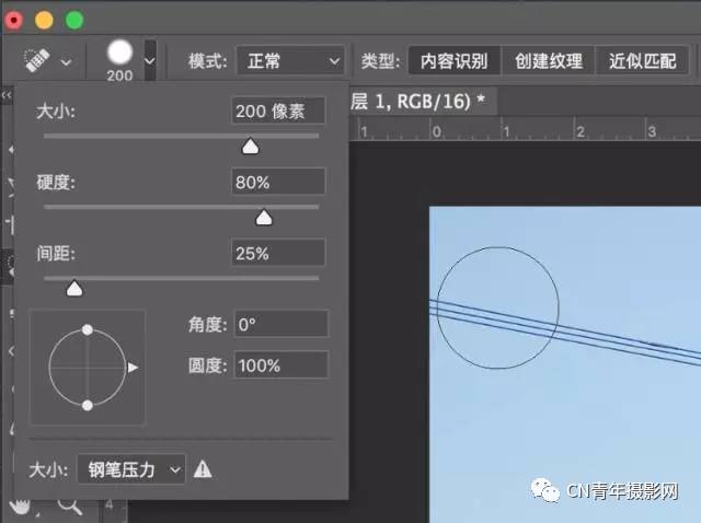 我将功具的大小调整为200像素,你可以看到鼠标已经变成了相应大小的圆圈。