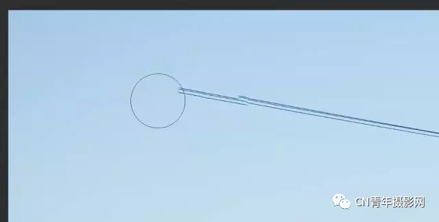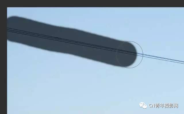当修复到最后的地方,我将工具大小设置为9像素,该工具很智能,我涂抹的时候经过了纵向的电线,但是修复后它们不会受到影响。