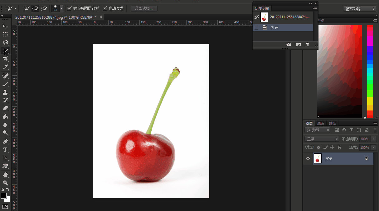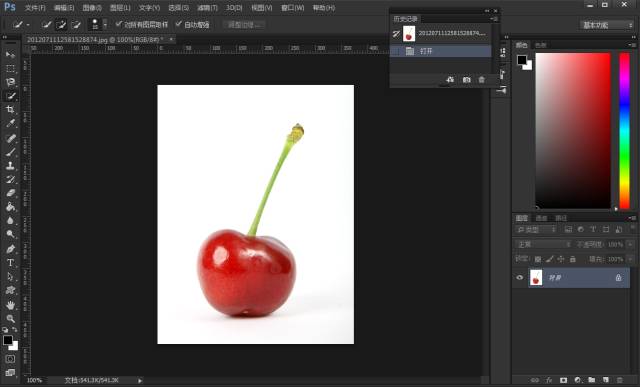 1.打开Photoshop导入素材,这里选取的是一个小樱桃素材