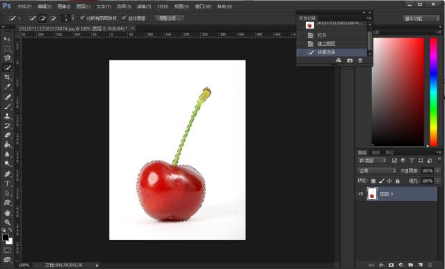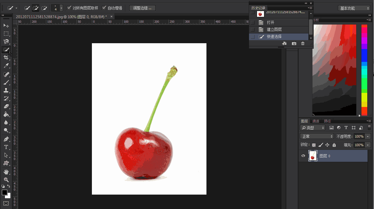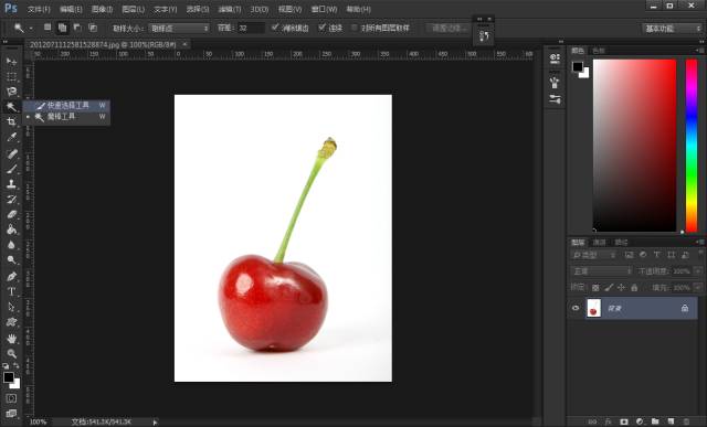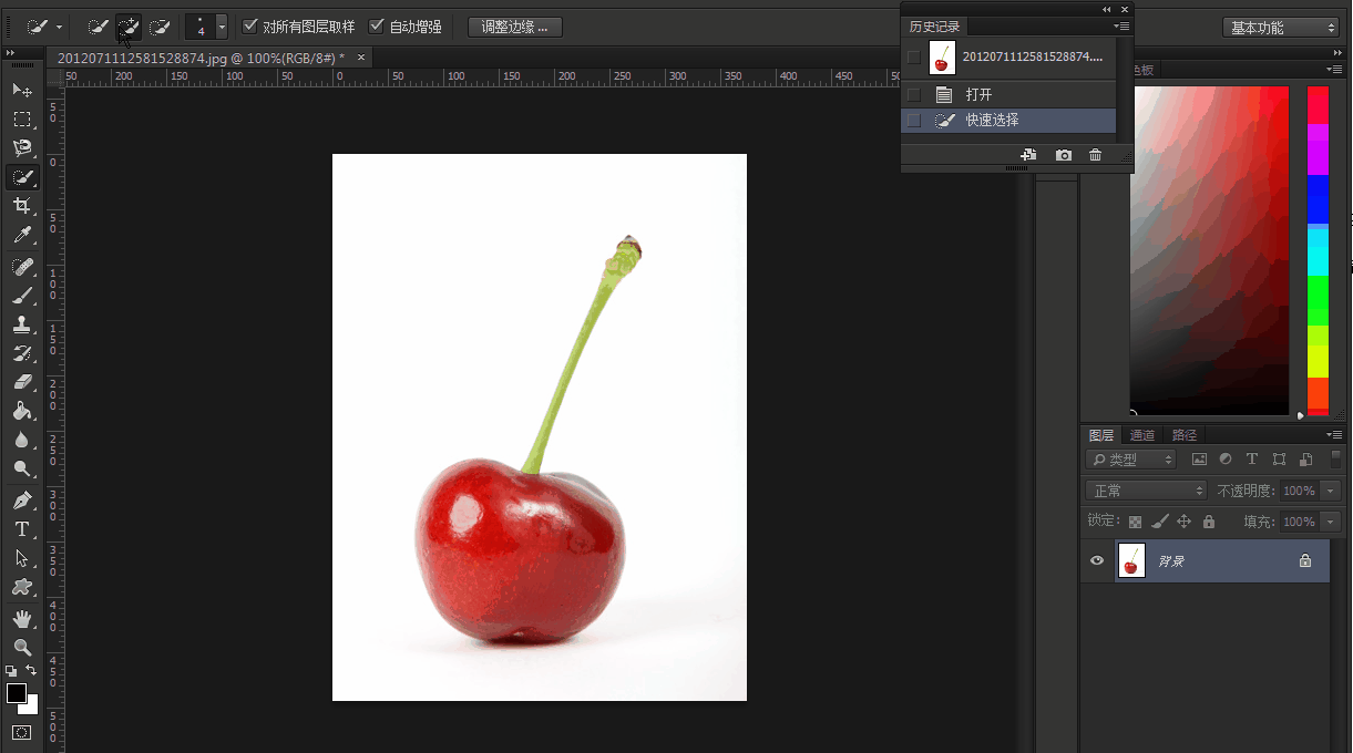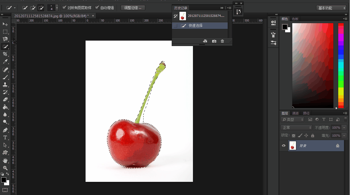 2.然后点击快速选择工具,即将选择图片中的樱桃
