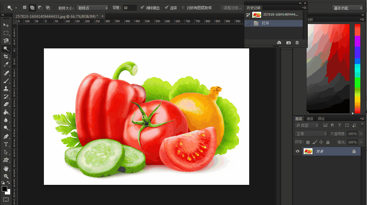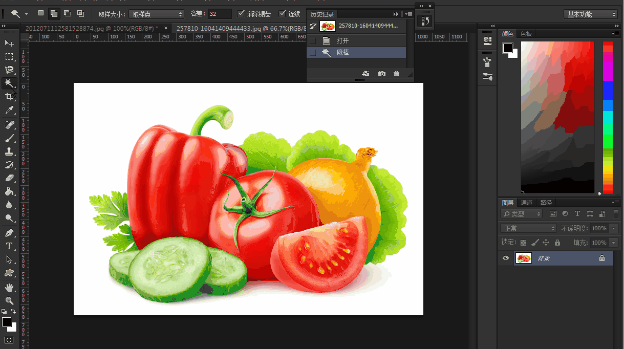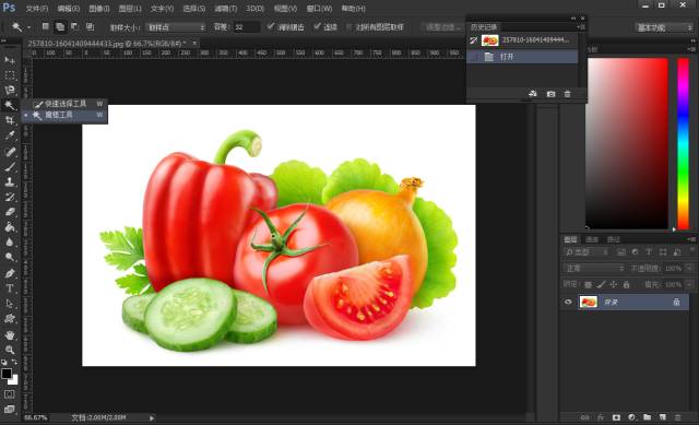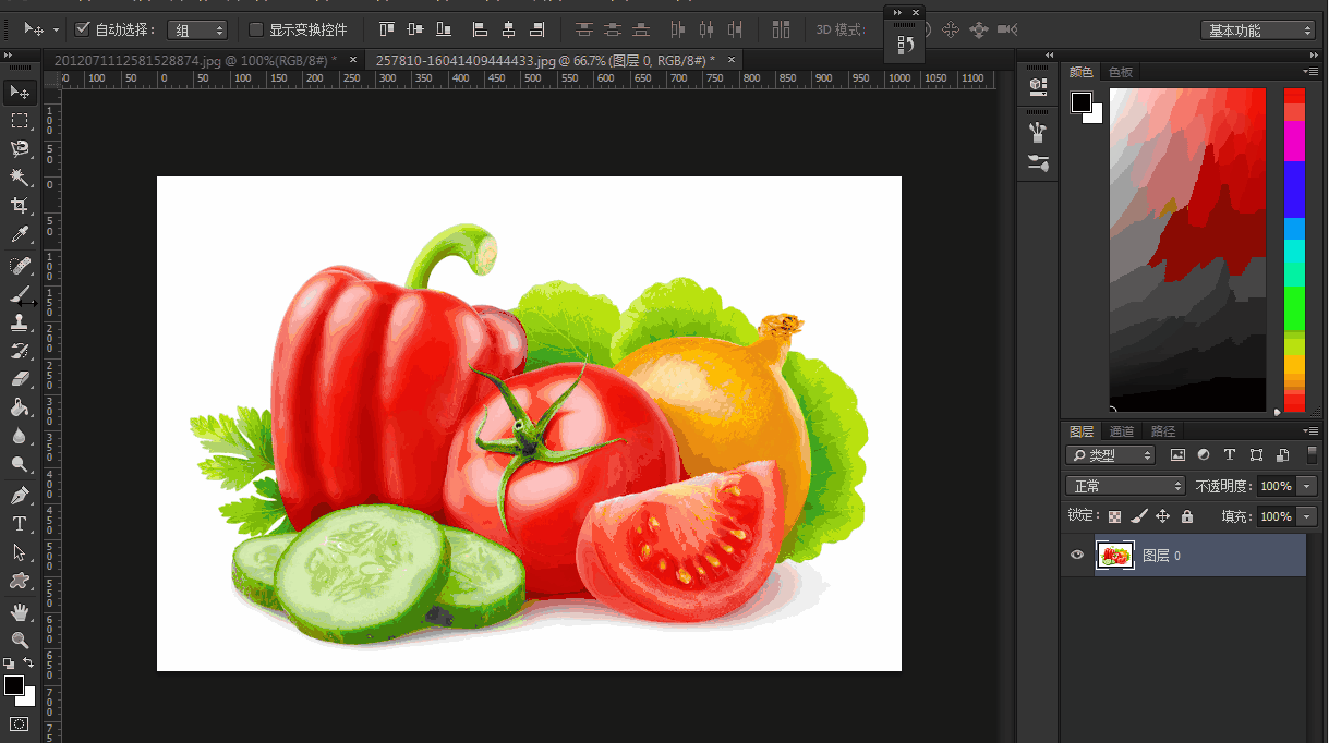 1.打开Photoshop导入素材,这里选取的是一组蔬菜素材