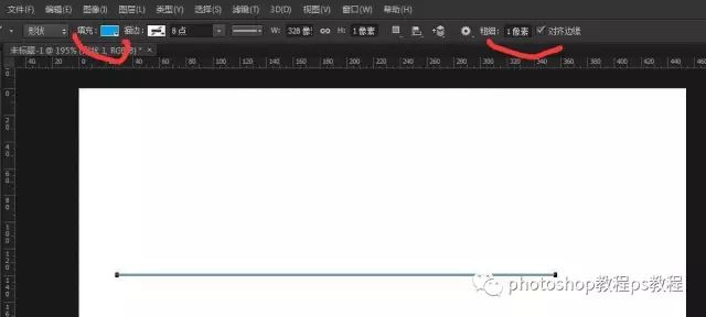 选择直线工具之后,可以在选项栏上,调整设置相应的参数,如图所示。
