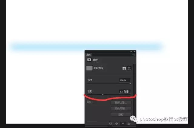在直线工具属性面板,把羽化参数调整下,那么可以创建出一个模糊的一条线,如图所示。