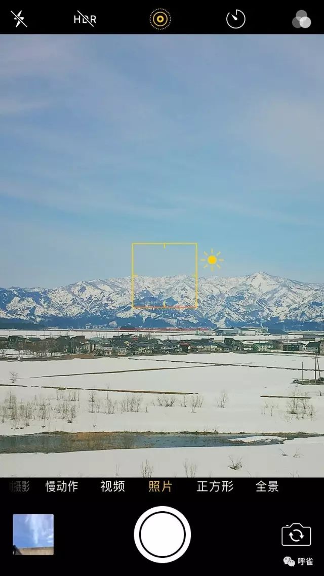 而确保水平线的平直最重要的就是找参照物。常见的参照物有地平线、海平线、建筑物等等,实际场景中随机应变。确保这些应该平行于地平线的物体在你的取景框中平直即可。而你的取景框中也有可供你辨认的参考线。如果你用的是相机,那么取景框的四边、对焦点的正方形等都可以成为你的参考线,如果用的是手机,则黄色的对焦框以及上下边也可以成为你的参考线。