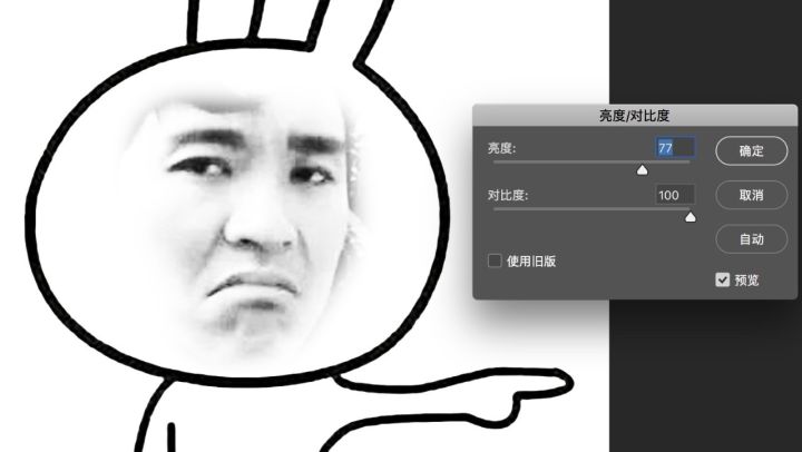 然后调整亮度对比度,尽量将脸调成白色或浅灰色。